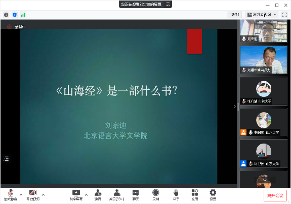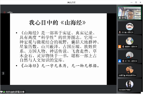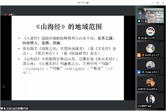 6月6日晚,北京语言大学人文学院教授、博士生导师、文化史研究所所长刘宗迪先生应邀做客东方文化大讲堂通识教育讲座暨太阳成集团tyc41183“师说讲堂”,通过腾讯会议线上平台作了题为 “《山海经》是一部什么书”的学术报告,来自山大校内外的300余名师生远程聆听。